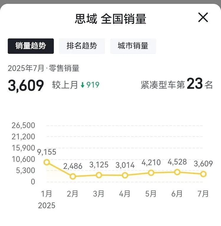 今年1月思域的销量还维持在9000多辆的水平,到了2月份直接崩盘,只有不到2500台,之后几个月就一直维持在3-4千台的范围。